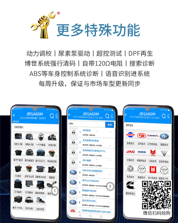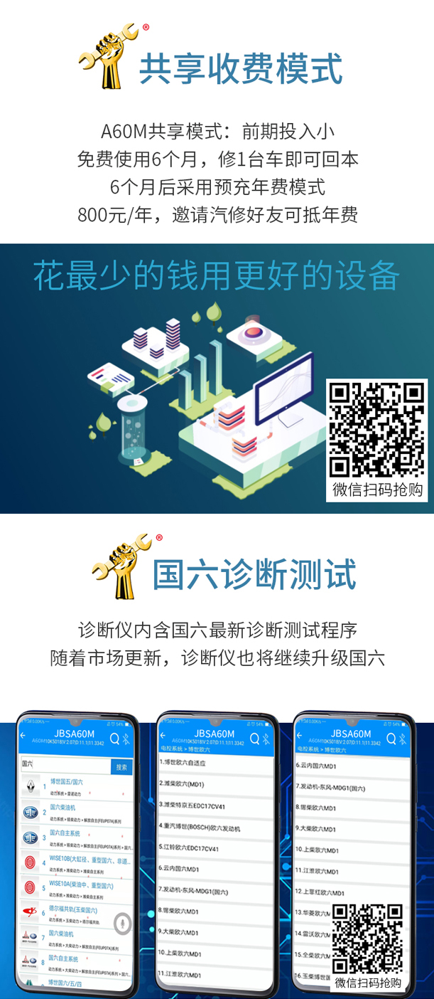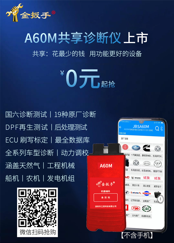 花最少的錢用更好的設備,A60M手機版診斷儀更適合汽車維修院校畢業(yè)生實習操作使用,功能強大費用低廉,實習修車的好幫手。一個接頭配備手機安裝APP輕松實現各類柴油車包括發(fā)動機,自動變速箱,車身控制模塊等各個功能使用,讀碼,清碼,數據流,元器件測試,標定發(fā)動機參數,修改ECU數據等各種功能應有盡有,特別適合各類汽車院校實習畢業(yè)生使用。
