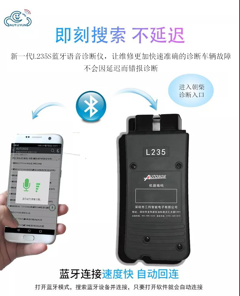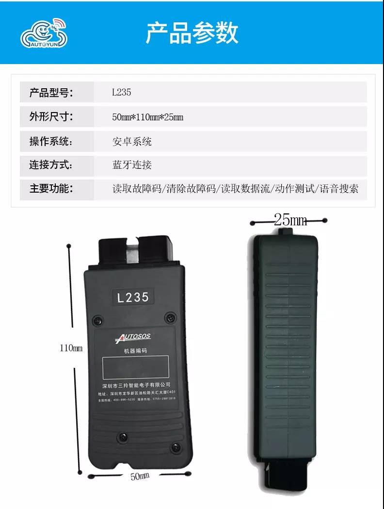 聯(lián)動(dòng)云L235手機(jī)版柴油解碼器是深圳市三羚公司基于手機(jī)安卓系統(tǒng)開發(fā)的一款便攜式柴油發(fā)動(dòng)機(jī)故障解碼器,主要適用對(duì)象為汽修學(xué)徒和運(yùn)輸公司及車隊(duì)司機(jī),聯(lián)動(dòng)云手機(jī)版柴油解碼器可以輕松實(shí)現(xiàn)讀取發(fā)動(dòng)機(jī)故障碼,清除發(fā)動(dòng)機(jī)故障碼,讀取發(fā)動(dòng)機(jī)數(shù)據(jù)流,動(dòng)作測(cè)試,元器件測(cè)試等諸多實(shí)用的功能,是柴油車維修學(xué)徒和柴油車駕駛員必不可少的袖珍工具,當(dāng)你收到聯(lián)動(dòng)云手機(jī)版柴油解碼器可以直接掃碼下載安裝軟件或者撥打客服熱線4009965230。